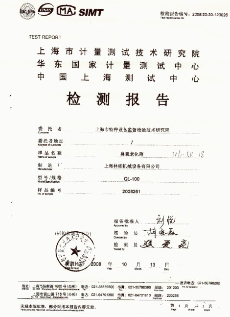 08年8月份,上海市特種設備監督檢驗技術研究院在經過眾多篩選后最終選擇林頻,與我司正式簽約一臺型號為QL-100的臭氧老化試驗箱,在出廠前嚴格把關,并已通過上海計量院第三方檢測合格,現已驗收合格并已成功交付使用.因為我們專業,所以值得信賴! 林頻全體人員歡迎您的咨詢!TEL:024-83503936 31314378 http://www.asyvilc.cn